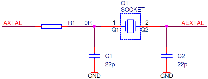Crystal socket Q1 schematics below: