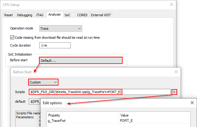 1. NXP Kinetis device: GPIO trace port selection now as script parameters. Affected families: MK7*, MK6*, MK5*, MK4*, MK3*, MK2*, MK1*, MKV3*, MK02*, MKE1*F*, MKV4*, MKV5*.